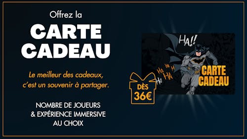 Que ce soit pour un anniversaire ou une occasion particulière, Batman Escape a ce qu’il vous faut pour offrir une expérience unique avec sa carte cadeau : une expérience immersive ou un escape game directement à Gotham City !